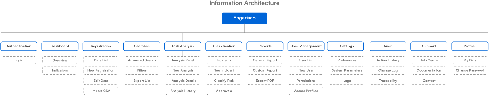 Engerisco operated with a fragmented legacy system. The platform integrates complex processes: logistics registration, risk analysis, incident classification, and user management. The challenge was structural and contextual. How to organize dense modules without overloading? How to create clarity in critical data with multiple access profiles? And how to do this for users who aren’t familiar with technology and spend the day operating the system?