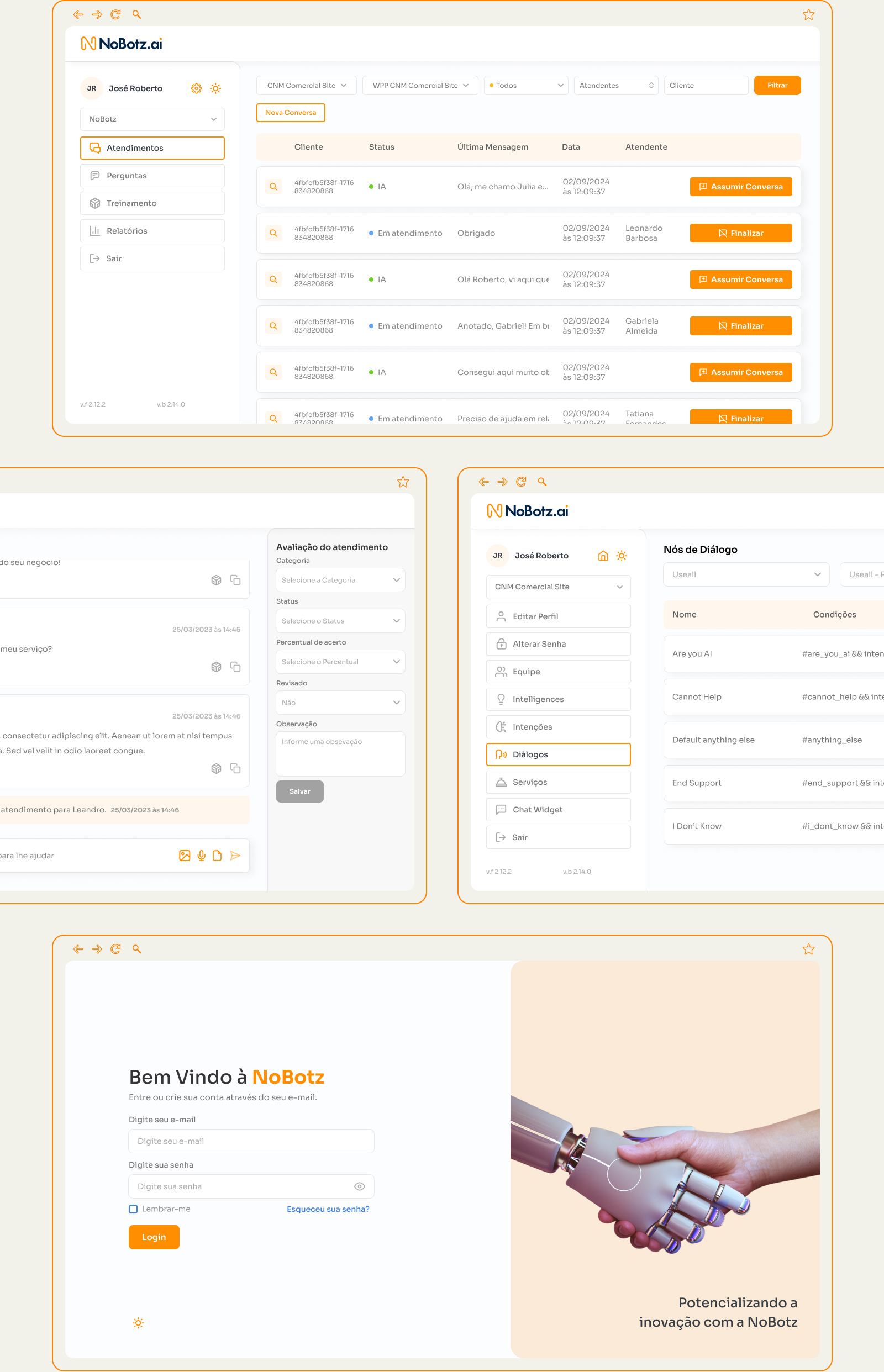Criar uma plataforma enterprise onde times de suporte pudessem monitorar conversas da IA em tempo real, intervir quando necessário, e treinar o sistema continuamente. O desafio era tornar tecnologia complexa acessível sem sacrificar poder e controle.